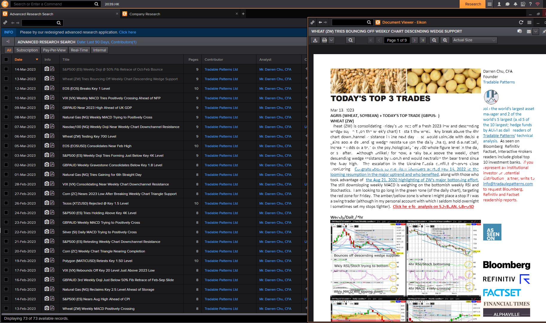 At Tradable Patterns’ peak following in summer 2021, 500+ hedge funds, banks, asset managers, corporates downloaded content made available freely on Bloomberg, LSEG, Factset