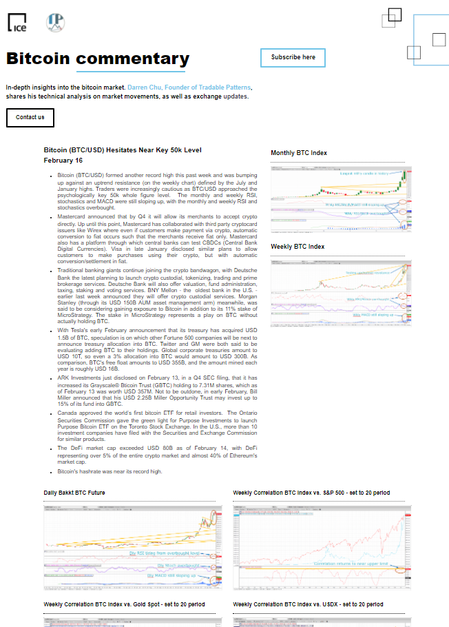 Tradable Patterns provided in 2021-2022 biweekly Bitcoin/crypto industry content to ICE as well as a weekly fundamental analysis on BTCUSD (Bitcoin), ETHUSD (Ethereum) and Ripple (XRPUSD) and a crypto industry recap