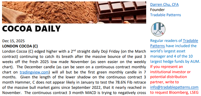 Cocoa Daily Technical Analysis – Dec 15, 2025