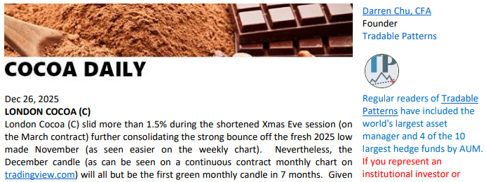 Cocoa Daily Technical Analysis – Dec 26, 2025