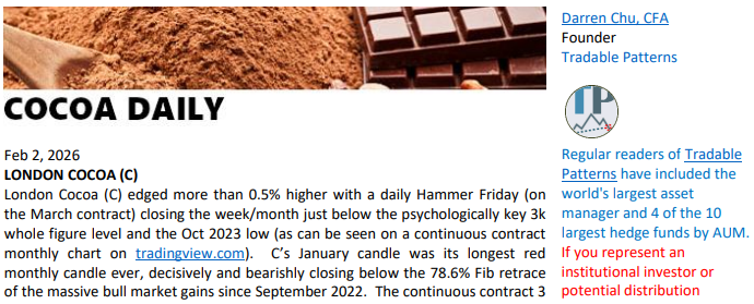 To trial Cocoa Daily, please write to [email protected] and indicate whether you represent a commodity trading firm, brokerage or hedge fund. These reports are not available at retail rates. Subscribers of Cocoa Daily also have access to Week’s Top 3 Trades.