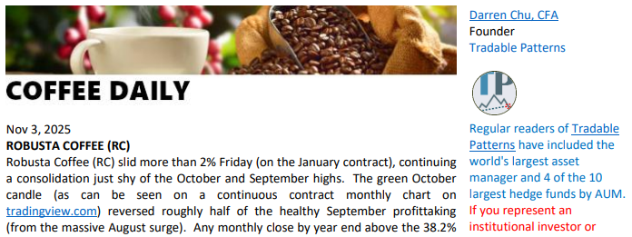 Coffee Daily Technical Analysis – Nov 3, 2025