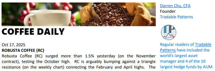 Coffee Daily Technical Analysis – Oct 17, 2025