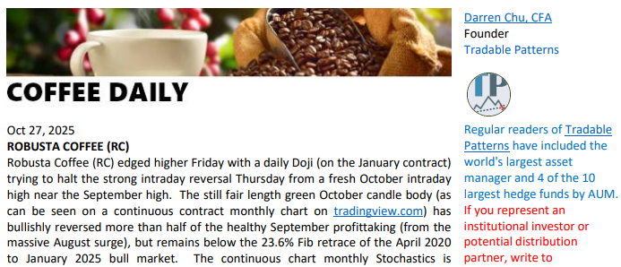 Coffee Daily Technical Analysis – Oct 27, 2025