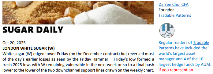 Sugar Daily Technical Analysis – Oct 20, 2025